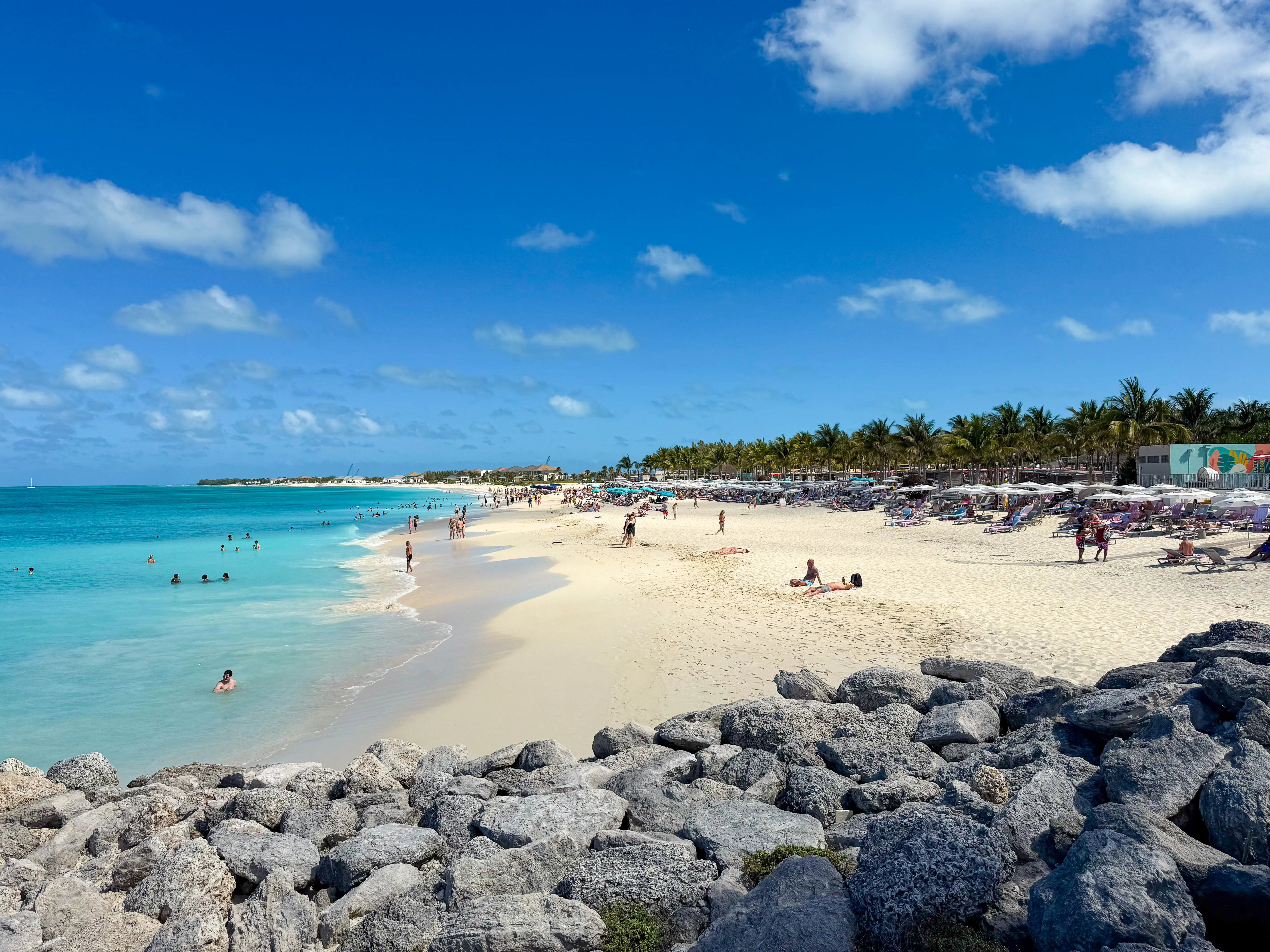 We docked in Bimini early in the morning, and everyone received a message on their app around 7 AM that we had docked. If I wanted to get a seat by the party pool at the Beach Club, I would’ve gotten off the ship as soon as we docked. However, since I knew I’d just want to check it out and not hang around, I decided to skip the crowded morning disembarkation and go later in the afternoon. If you want the best selection of pool or beach seats – disembark early.